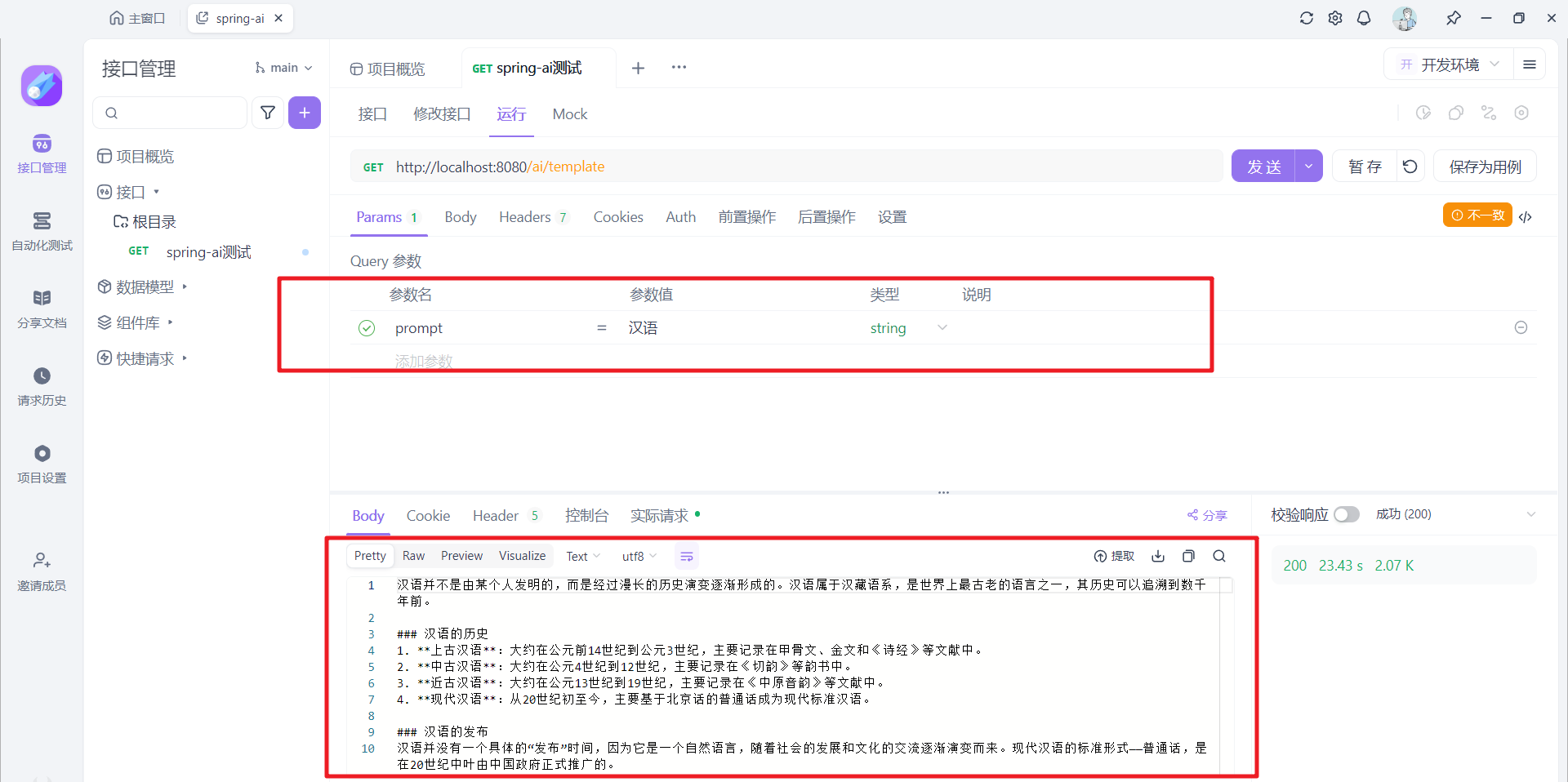 我们按照预先设置好的Prompts模板语法进行提问,我们看下图,我们在输入对应language后deepseek会按照PromptTemplate设置好的模版语法内容进行提问回答